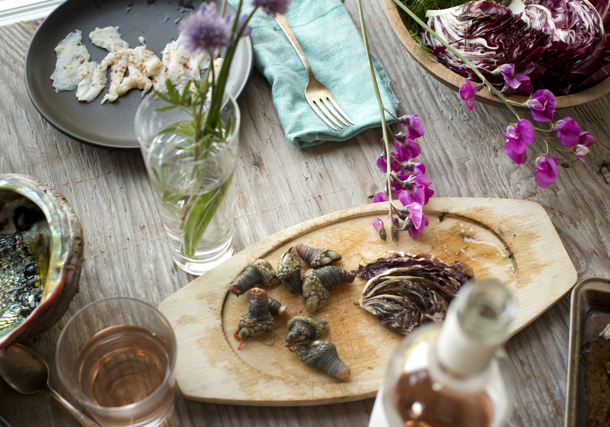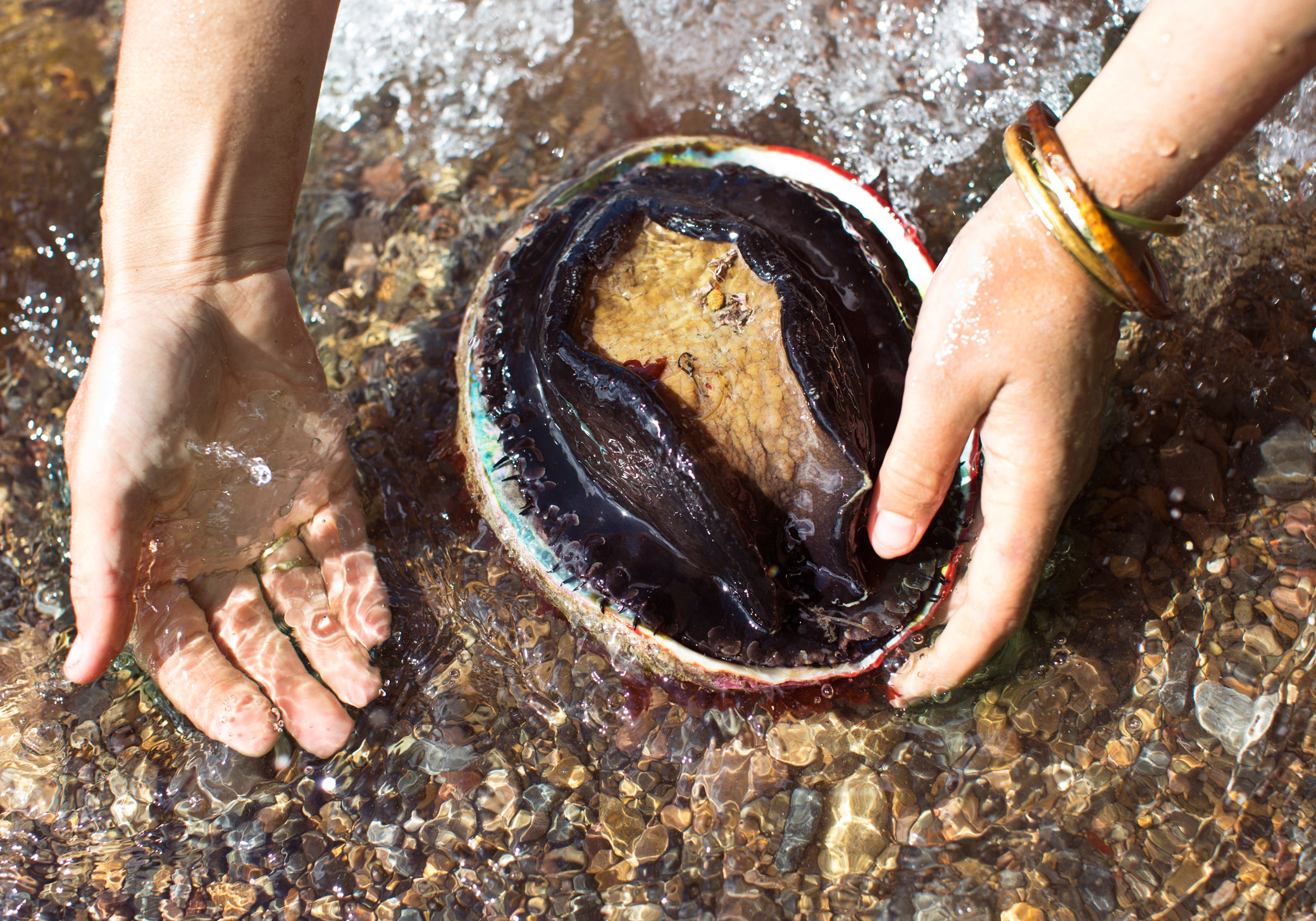 Plunging into the ocean in search of abalone is an extreme sport as well as one of the great foraging experiences. Navigating the cold water and prizing abalone from the ragged coastline are challenging feats that only the truly adventurous can fully embrace. Beyond that, the US recently issued numerous mandates that outline stringent diving protocol in response to overfishing and disease. Fishing is not permitted south of the San Francisco Bay but rather along the ledges and bluffs of Northern California’s coastline. With fishing license in hand, divers can harvest red abalone from April through November, excluding July, and are only allowed three a day and 24 per year.